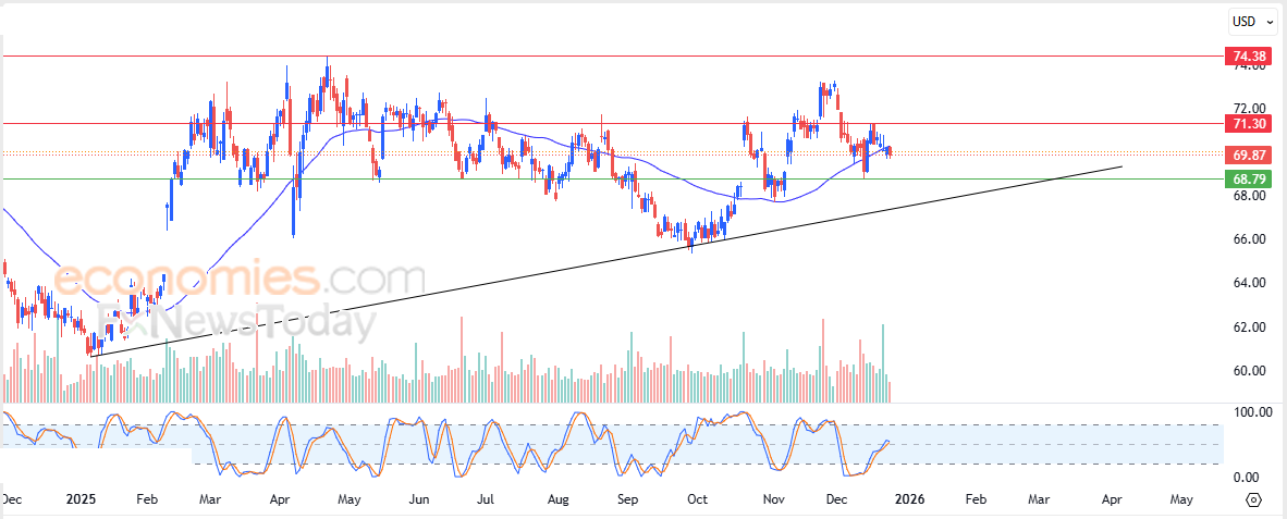 Therefore we expect the stock price to move higher in the upcoming trading, as long as it remains stable above the support level at $68.80, to target the resistance level at $71.30.