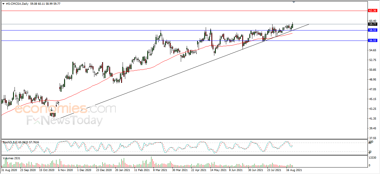 Comcast's stock rose 0.66% in the last session, settling at 59.80 amid positive support from the 50-day SMA, with the dominance of the main upward trend in the medium term, coupled with positive signals from the RSI.