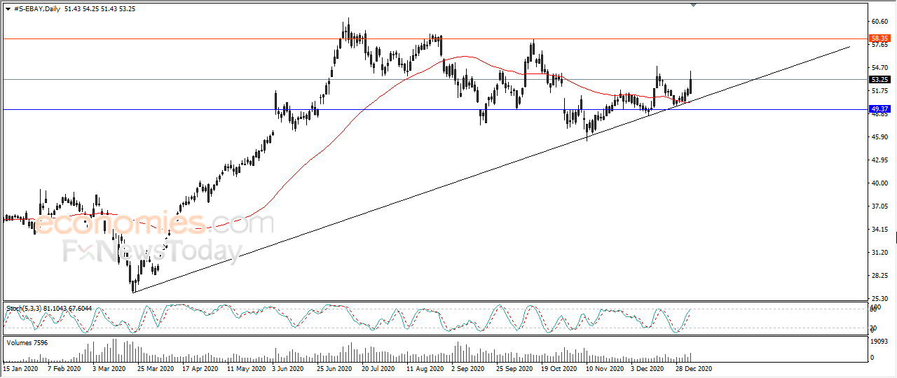 eBay's stock rose 2.29% in the last session after leaning on the main upward long-term trend line, with positive signals from the RSI, coupled with positive support from the 50-day SMA.