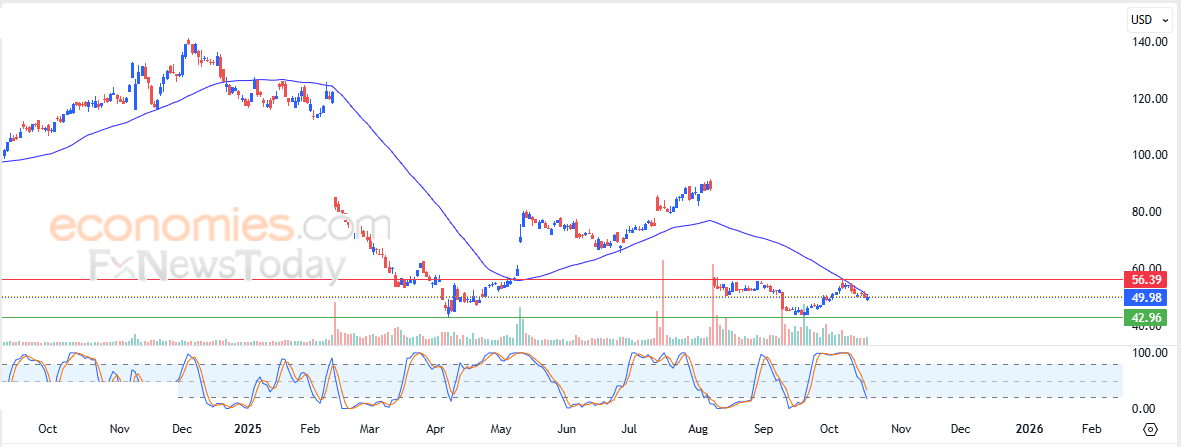 Ripple (XRPUSD) advanced slightly in its latest intraday trading, attempting to recover part of its previous losses while also working off its clearly oversold levels shown by the relative strength indicators, especially amid the start of positive signals emerging from them. However, ongoing dynamic pressure from trading below the 50-day SMA reduces the chances of a near-term recovery, while the main short-term bearish trend remains dominant, with trading along a descending line that reinforces this direction.