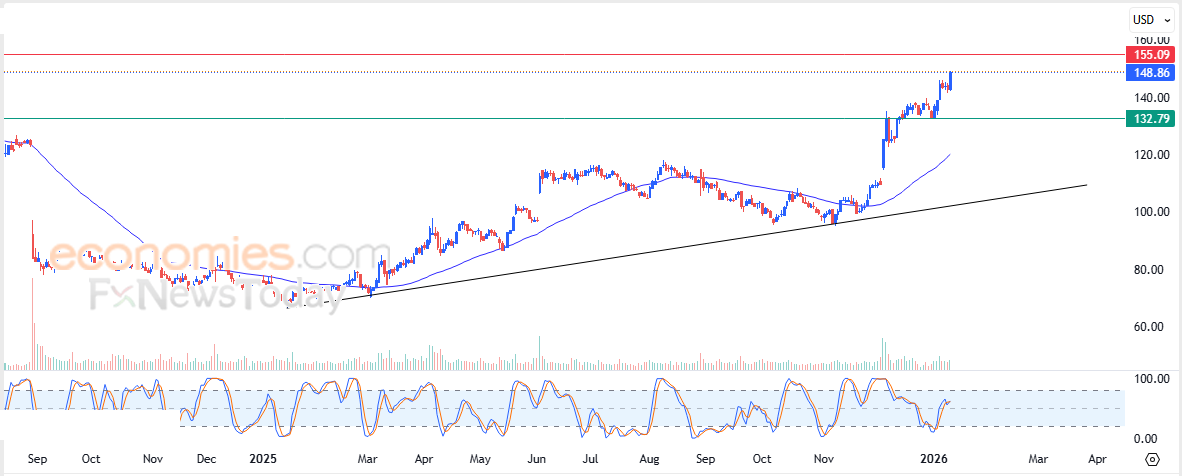 Therefore we expect the stock price to rise in upcoming trading, as long as the $132.80 support level remains intact, to target the first resistance level at $155.00.