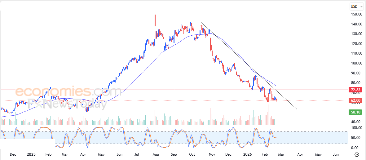 Roblox Corporation (RBLX) stock price recorded a decline in its latest intraday trading, amid the dominance of a short-term corrective bearish trend, while moving alongside a trendline supporting this path. The stock remains under negative pressure as it continues to trade below its 50-day SMA, alongside the emergence of negative signals on the Stochastic indicator.