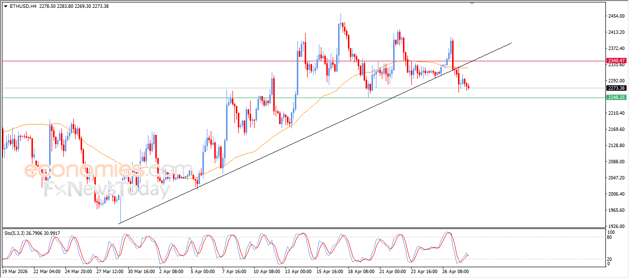 Ethereum (ETHUSD) declined during recent intraday trading, amid the dominance of a short-term corrective bearish wave. This move gained strength after breaking a key bullish trendline on the short-term basis. Additionally, negative pressure persists as the price continues to trade below EMA50. In the background, we notice the beginning of a bearish crossover on the relative strength indicators, after the price managed to relieve part of its previous oversold condition, opening the door for further losses in the near term.