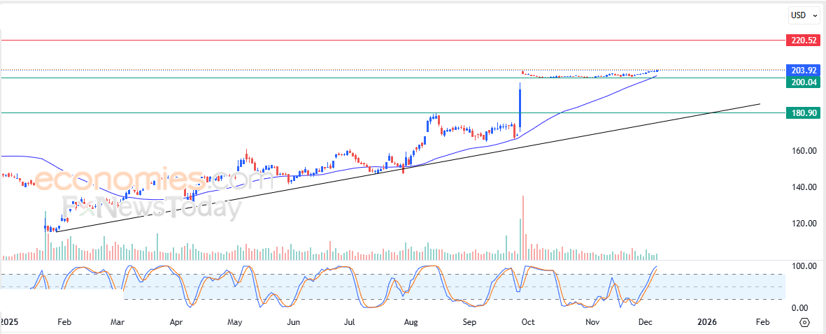 Therefore we expect the stock to rise in its upcoming trading, especially as long as it remains above $200.00, targeting the resistance level of $220.00.