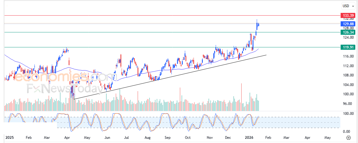 Therefore we expect the stock price to rise in upcoming trading, as long as it remains stable above the $126.35 level, to target the first resistance at $133.40.