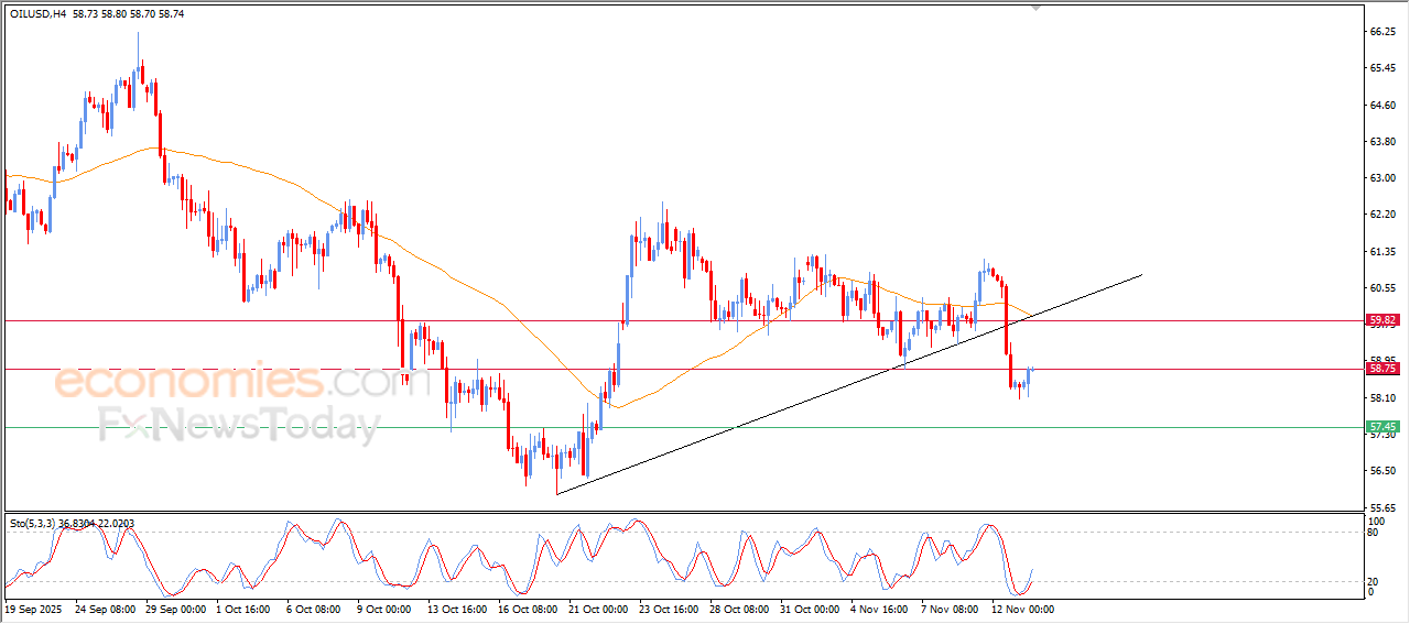 The price of (crude oil) rose in its last intraday trading, attempting to recover some of its previous losses and offloading some of its oversold conditions on the relative strength indicators, especially with the emergence of the positive signals, affected by breaking bullish corrective trend line previously on the short-term basis.