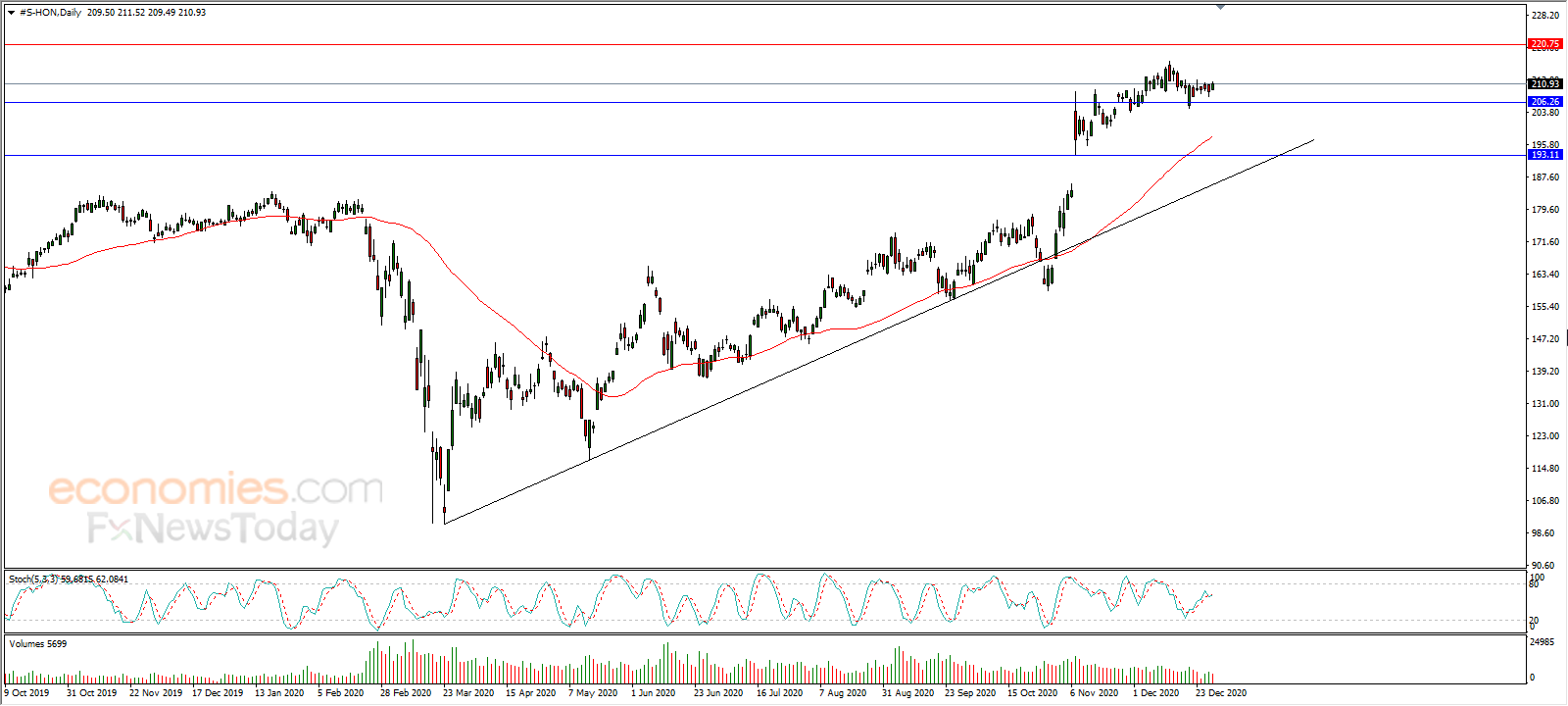Honeywell's stock (HON) returned higher with a 0.83% profit, amid the dominance of the main upward medium-term trend, with support from the 50-day SMA, coupled with positive signals from the RSI.