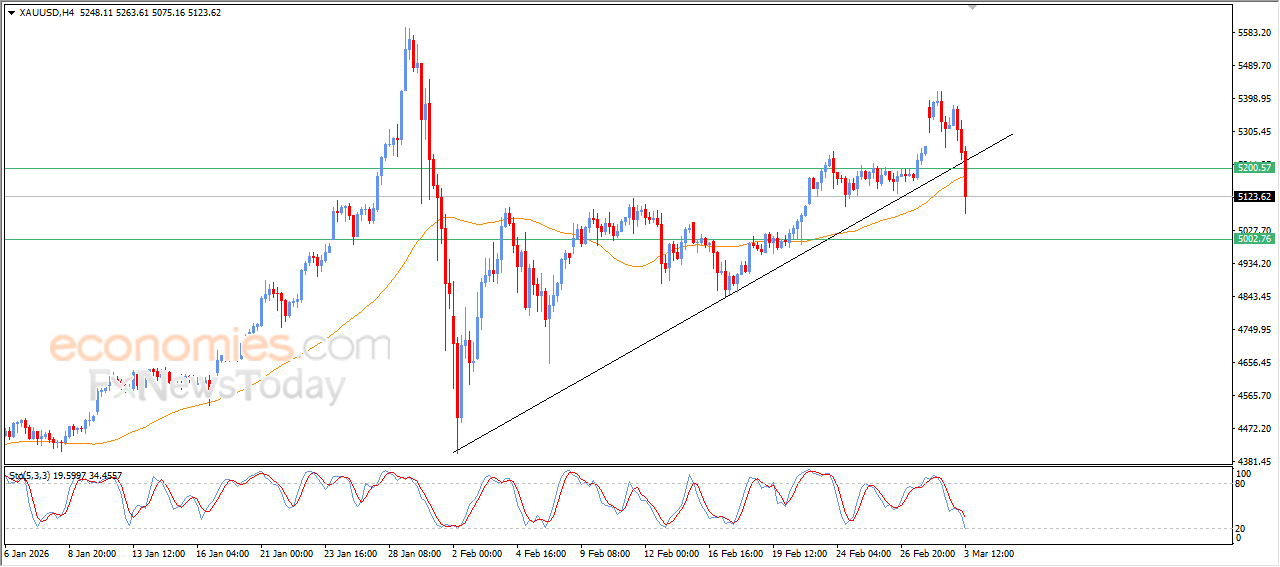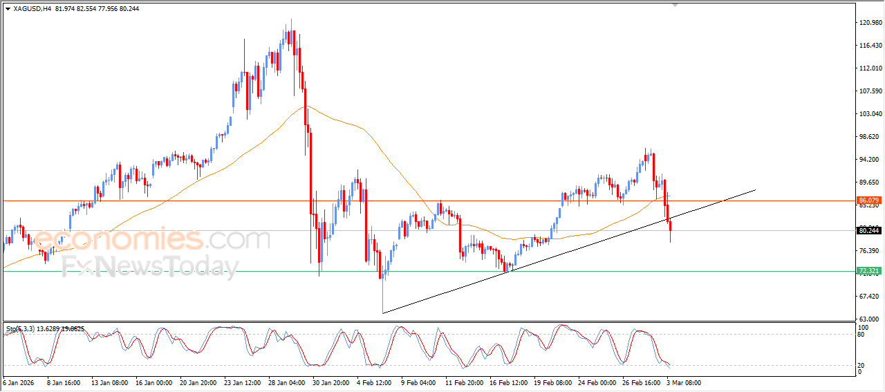 The price of gold slipped lower in its last intraday trading, after breaking minor bullish trend line on short-term basis, which pushed it into a wave of increasing negative pressure, which increased by breaking EMA50’s support, accompanied by the emergence of clear negative signals from relative strength indicators, indicating a sudden turn in the technical track and reinforces the possibilities of the decline continuation in the near period.