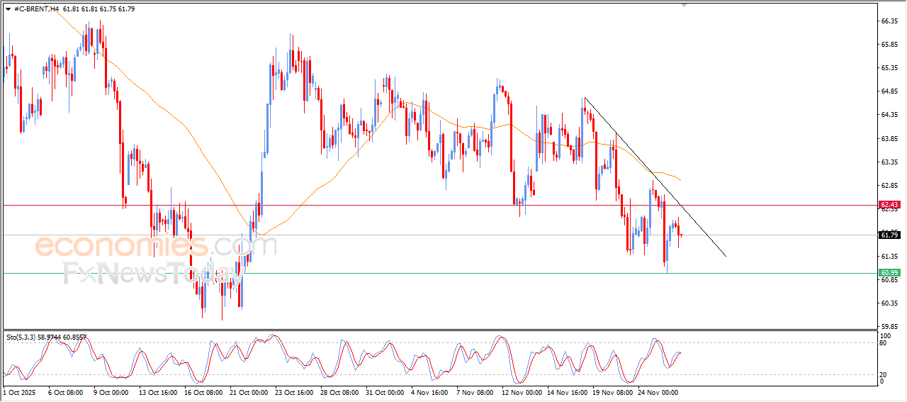 Brent crude oil price declined in its last intraday levels, after offloading some of its previous losses with the opening of today’s trading, amid the continuation of the negative pressure due to its stability below EMA50, with the dominance of the main bearish trend and its trading alongside steep minor bearish trend line on the short-term basis.