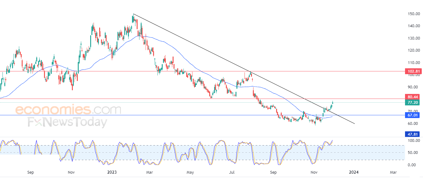 Therefore we expect more gains for the stock, targeting the resistance of 102.80, provided the resistance of 80.44 was breached.