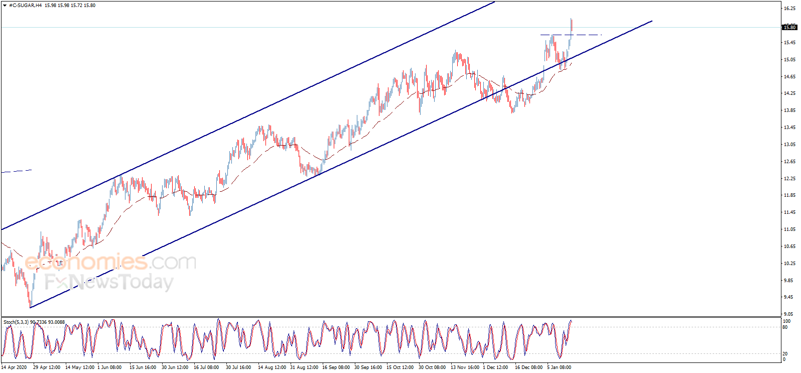 Sugar price faces temporary negative pressure to head towards potential test to 15.62 level, which represents the first protection factor to the continuation of the expected bullish trend for today, which gets continuous support by the EMA50, noting that our next main target reaches 16.63.