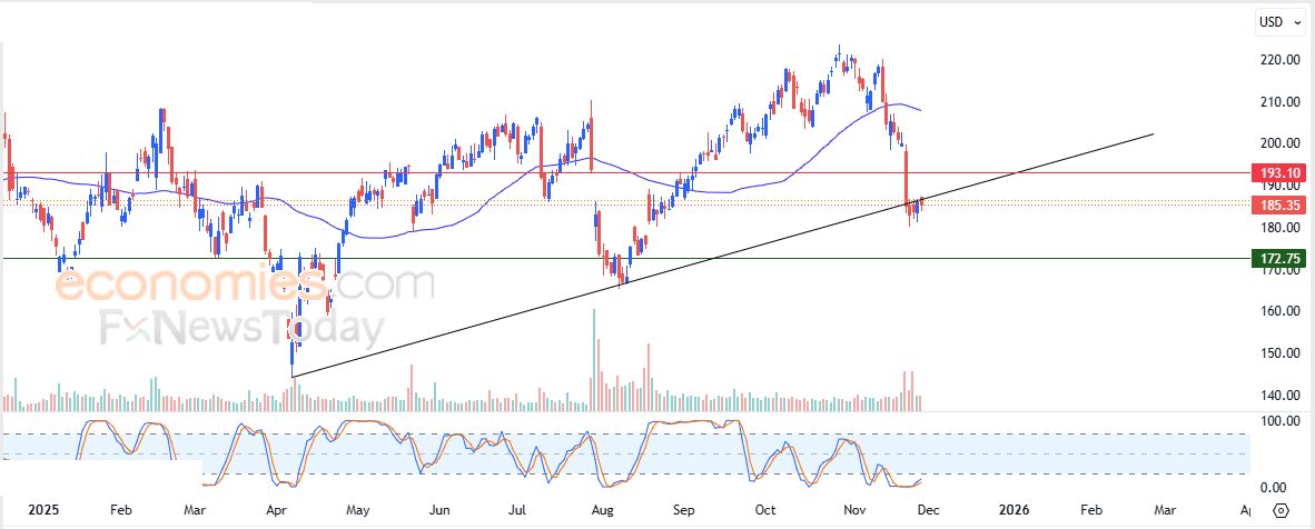 Therefore we expect the stock to decline in its upcoming trading, as long as it remains below the resistance level of $193.10, targeting the support level of $172.75.