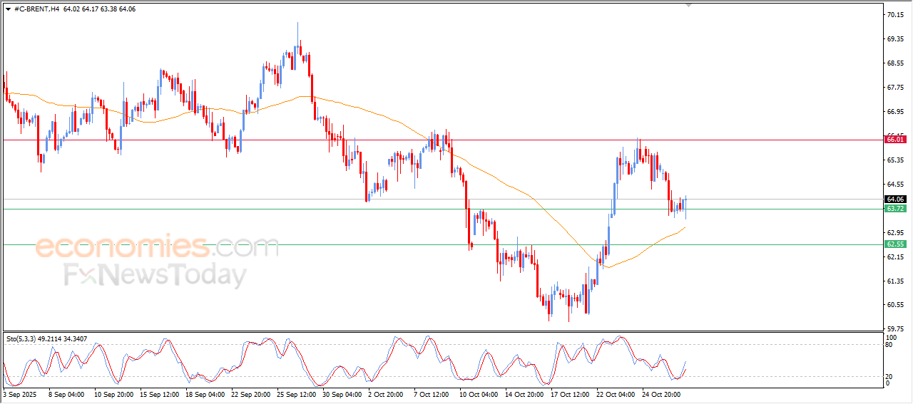 Brent crude oil prices rose in their last intraday trading, saving itself from early losses due to the stability of the current support at $63.70, amid forming positive divergence on the relative strength indicators, after reaching oversold levels, exaggeratedly compared to the price move, with the emergence of the positive signals, besides the continuation of the dynamic support that is represented by its trading above EMA50, reinforcing the chances of the price recovery in the upcoming period, especially with the dominance of the bullish corrective trend on the short-term basis.