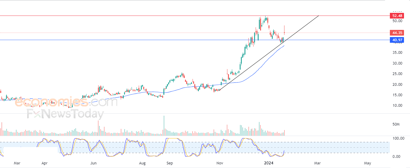 Therefore we expect more gains for the stock, targeting the resistance of 52.50, provided it settles above 41.00.