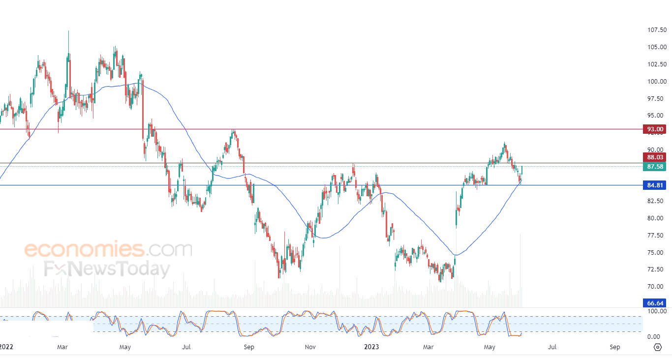 Therefore we expect more gains for the stock, targeting the resistance of 93.00, provided the support of 84.80 holds on.