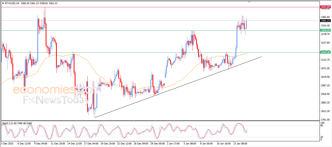 The price of (ETHUSD) recovered with strong rise in its last intraday trading, due to the stability of the support level at $3,300, gaining bullish momentum that helped it to achieve these gains, with the emergence of the positive signals from the relative strength indicators, after offloading its overbought conditions, opening the way for achieving more gains on the near-term basis, amid the dominance of the main bullish trend on the short-term basis, with its trading alongside trendline.