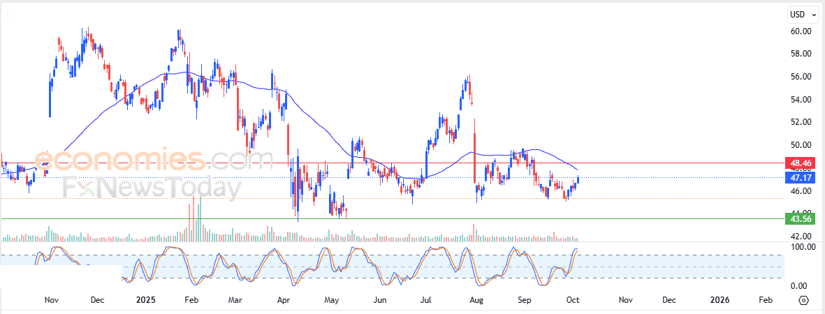 International Paper Company (IP) edged higher in its latest intraday trading, while remaining under the dominance of the main bearish trend. Persistent negative pressure continues as the stock trades below its 50-day simple moving average, amplifying downside risks and reducing the likelihood of a sustained recovery. Moreover, the RSI has begun to show a bearish crossover after reaching extremely overbought levels, indicating the formation of a negative divergence compared to price movement.