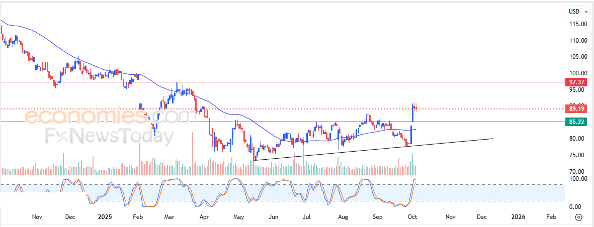 Therefore, we expect the stock to rise in upcoming trading sessions, as long as it remains above 85.20, targeting the key resistance level at 97.35.
