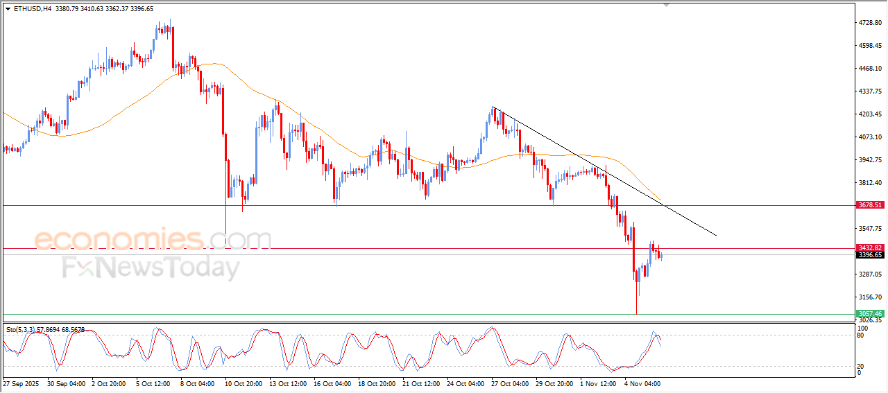 The price of (ETHUSD) settled with slight decline in its last intraday trading, affected by the negative pressure due to the relative strength indicators reaching overbought levels, exaggeratedly compared to the price move, forming negative divergence that intensified the dominance of the main bearish trend, amid its trading alongside minor trend line on the short-term basis.
