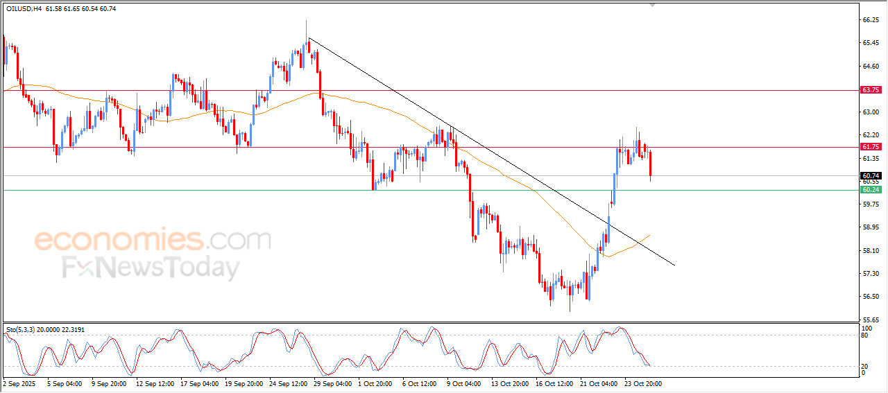 The price of (crude oil) declined in its last intraday trading, due to the stability of the stubborn resistance level at $61.75, attempting to gain bullish momentum that might help to breach this resistance, amid the dominance of bullish corrective wave on the short-term basis, supported by its continuous trading above its EMA50, reinforcing the chances of the price recovery in the upcoming period, especially with the relative strength indicators reaching oversold levels, exaggeratedly compared to the price move, indicating the beginning of forming bullish divergence.