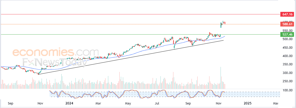 Therefore we expect the stock to return higher and target the resistance of $647.00, provided the support of $527.46 holds on.
