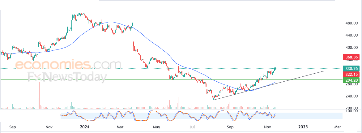 Therefore we expect more gains for the stock, provided it settles firmly above $322.15, targeting the first resistance at $368.36.