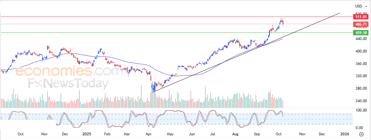 Therefore, we expect the stock to rise in upcoming trading, as long as support holds at 459.58, targeting the resistance level of 511.80.