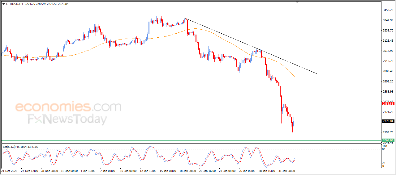 The price of (ETHUSD) rose in its last intraday trading, with the continuation of the negative pressure due to its trading below EMA50, reinforcing the stability and dominance of the main bearish trend on short-term basis, especially with its trading alongside supportive trend line for this path, attempting to recover some previous losses, by the emergence of positive signals from relative strength indicators, after reaching oversold levels.
