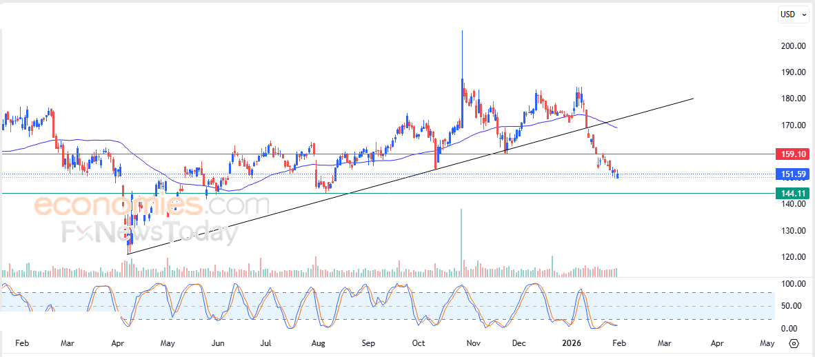 Qualcomm Incorporated (QCOM) stock price recorded a continued decline in its latest intraday trading, amid ongoing negative pressure from trading below its SMA50. The stock was previously affected by breaking below a main medium-term upward trend line, which increases the surrounding bearish pressure, especially with incoming negative signals from the RSI after the stock managed to unwind its oversold conditions, opening the way for further near-term losses.