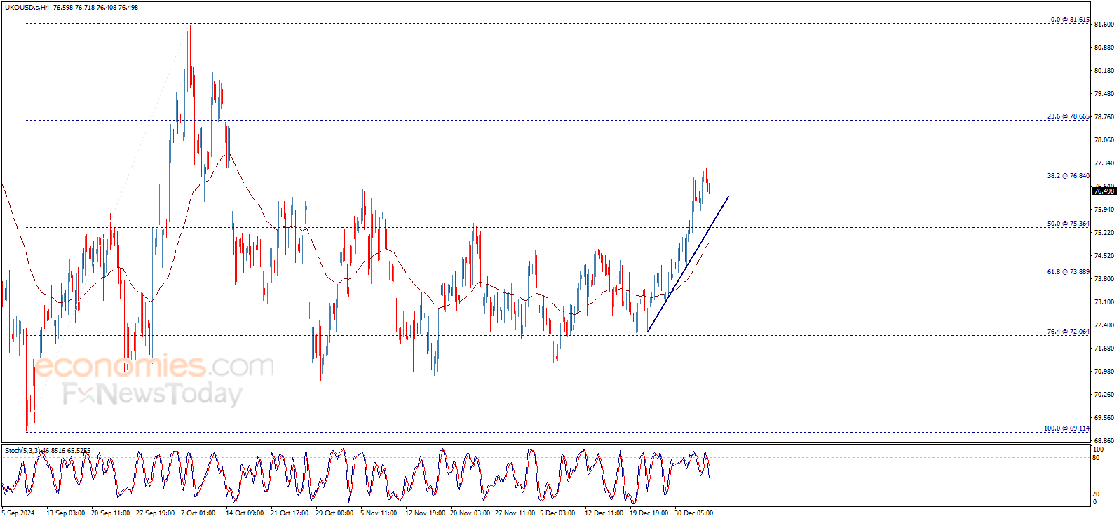 Brent oil price faces additional negative pressure to attempt to move away from 76.84$ level, which urges caution from the upcoming trading, as continuing the decline and breaking 76.05$ will stop the morning suggested positive scenario and push the price to visit 75.36$ as a next negative station.