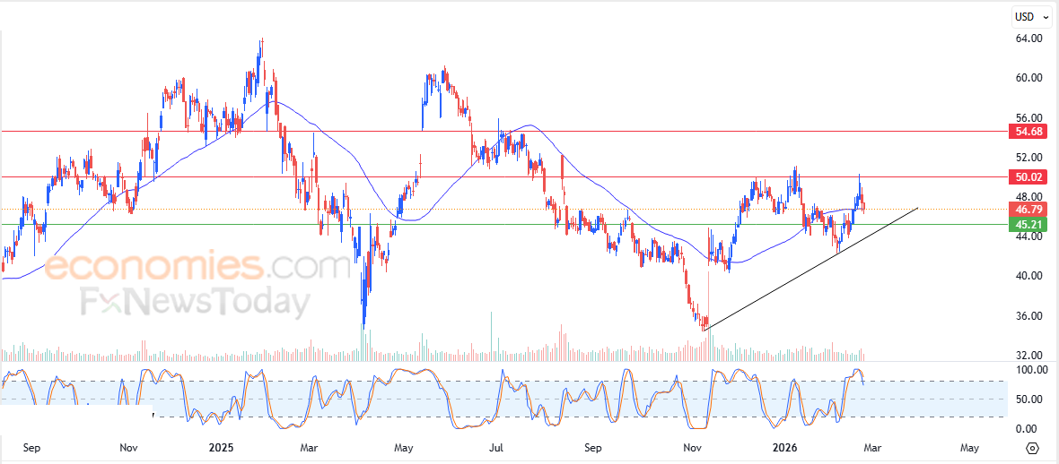 On Holding AG (ONON) stock price recorded a decline in its latest intraday trading, as the stock attempts to gain positive momentum that could help it recover and move higher again. At the same time, the price is trying to ease part of its overbought conditions on the Stochastic indicator, especially with the beginning of negative signals, while this pullback has brought the stock to test support at its 50-day SMA amid the dominance of a short-term corrective bullish trend.