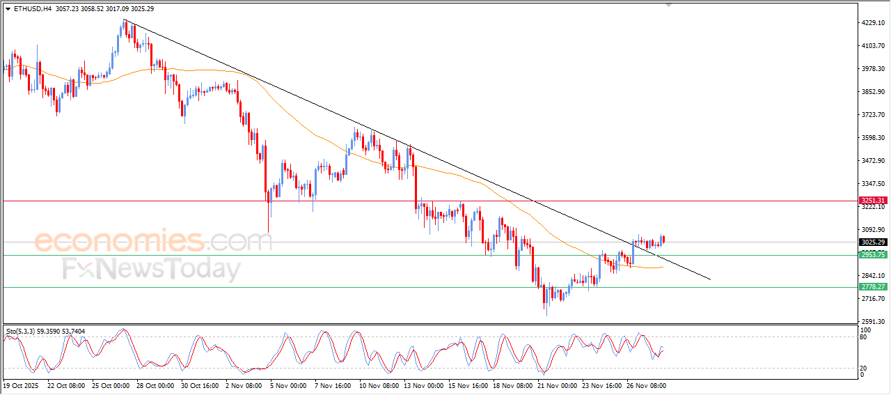 The price of (ETHUSD) is moving in limited range of sideways trading in its last intraday trading, to confirm breaching main bearish trend line on the short-term basis, gathering bullish momentum that might help it to rise again, amid the continuation of the dynamic support that is represented by its trading above EMA50, accompanied by forming positive divergence on the relative strength indicators after reaching exaggerated oversold levels compared to the price move, with the emergence of the positive signals on the relative strength indicators.