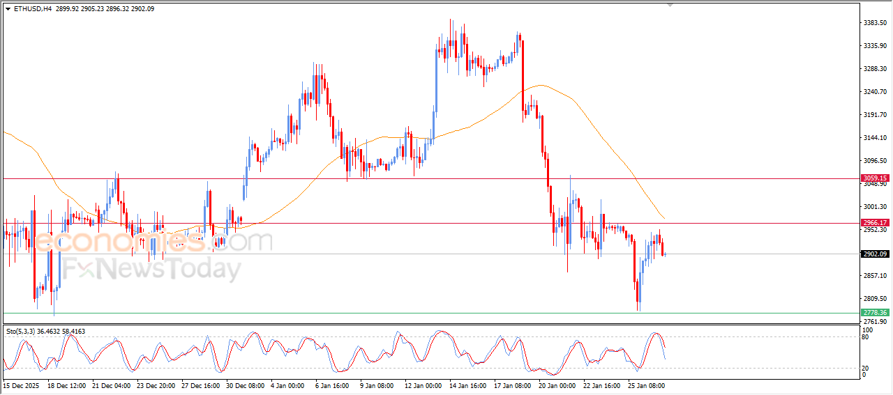 The price of (ETHUSD) declined in its last trading on the intraday levels, after forming negative divergence by the relative strength indicators’ previous moves, after reaching overbought levels, exaggeratedly compared to the price move, and the emergence of the negative signals from there intensified the negative pressure, especially with the continuation of its trading below EMA50, under the dominance of main bearish trend on short-term basis.