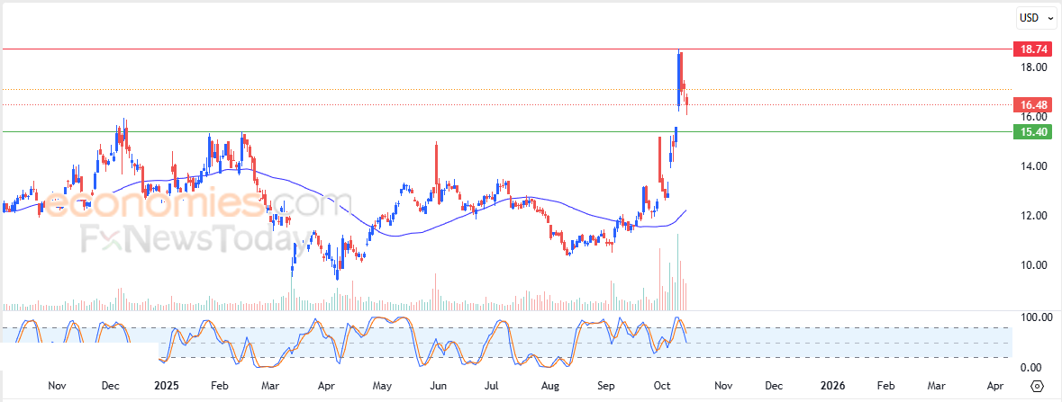 Therefore, we expect the stock to rise in its upcoming trading sessions as long as the support level of 15.40$ holds, targeting the resistance level of 18.75$.