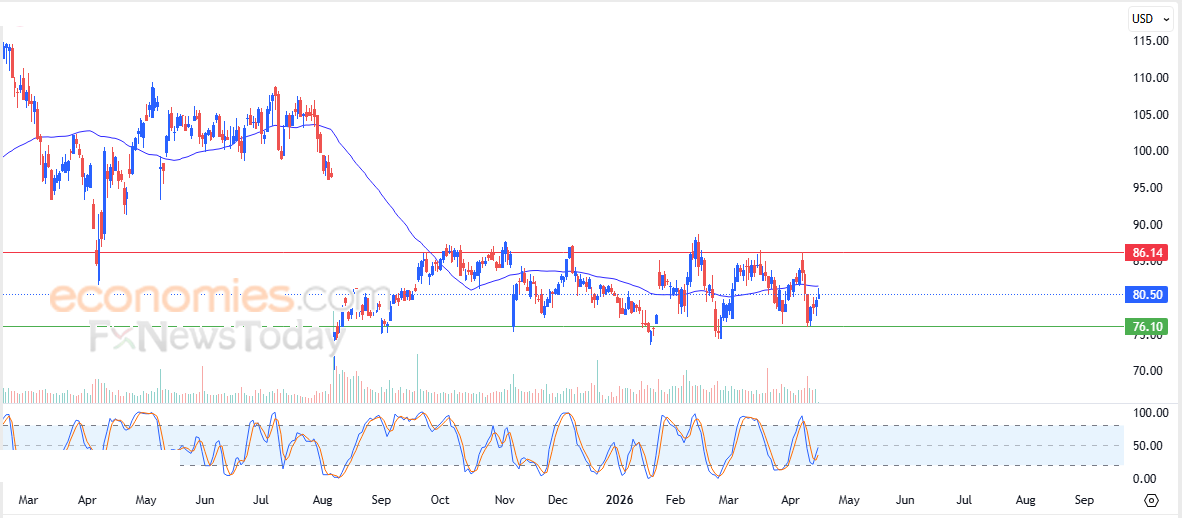 Fortinet, Inc. (FTNT) stock price bolstered its gains in its latest intraday trading, influenced by the stability of the key support level at 76.10. This provided the stock with positive momentum, which it is utilizing in an attempt to recover some of its previous losses, while simultaneously trying to ease its clear oversold conditions according to the Stochastic indicator, especially with positive signals emerging. With its recent rise, the stock has come into contact with the resistance of its 50-day SMA.