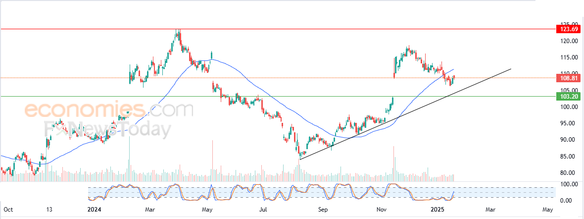 Therefore we expect the stock to rise and target the pivotal resistance of $123.70, provided the support of $103.20 holds on.