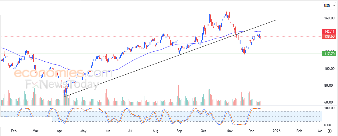 Therefore we expect the stock to decline in its upcoming trading, as long as the resistance level at $142.00 remains intact, targeting the pivotal support level at $117.70.