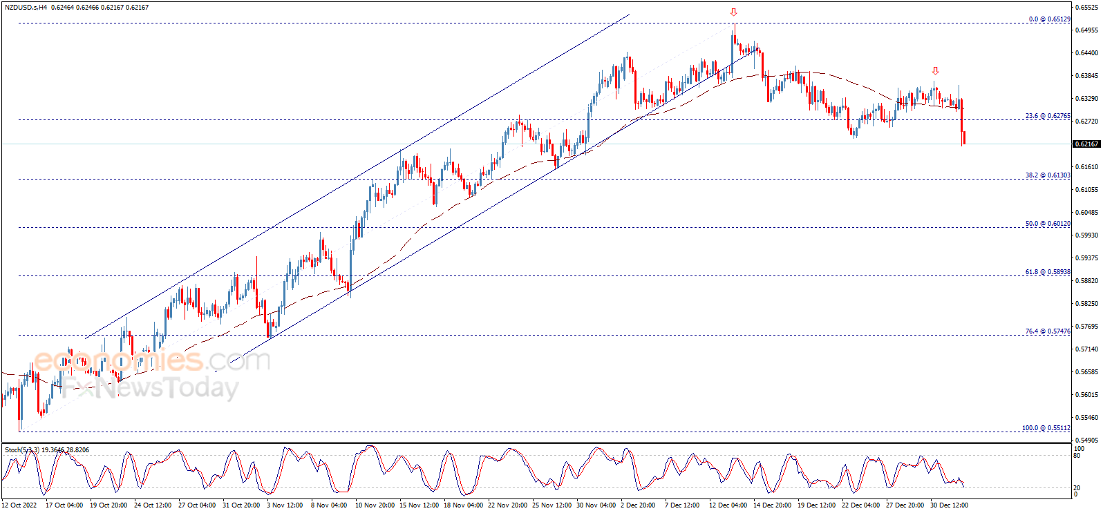 The NZDUSD pair trades with strong negativity to break 0.6275 and form double top pattern that has negative targets that start by testing 0.6130, to suggest the continuation of the bearish bias in the upcoming sessions as long as 0.6275 level remains intact, noting that breaking 0.630 will extend the bearish wave to reach 0.6010 areas as a next main station.