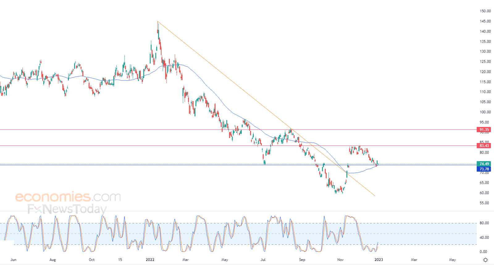 Therefore we expect the stock to return higher, targeting the resistance of 83.43, provided the support of 73.78 holds on.