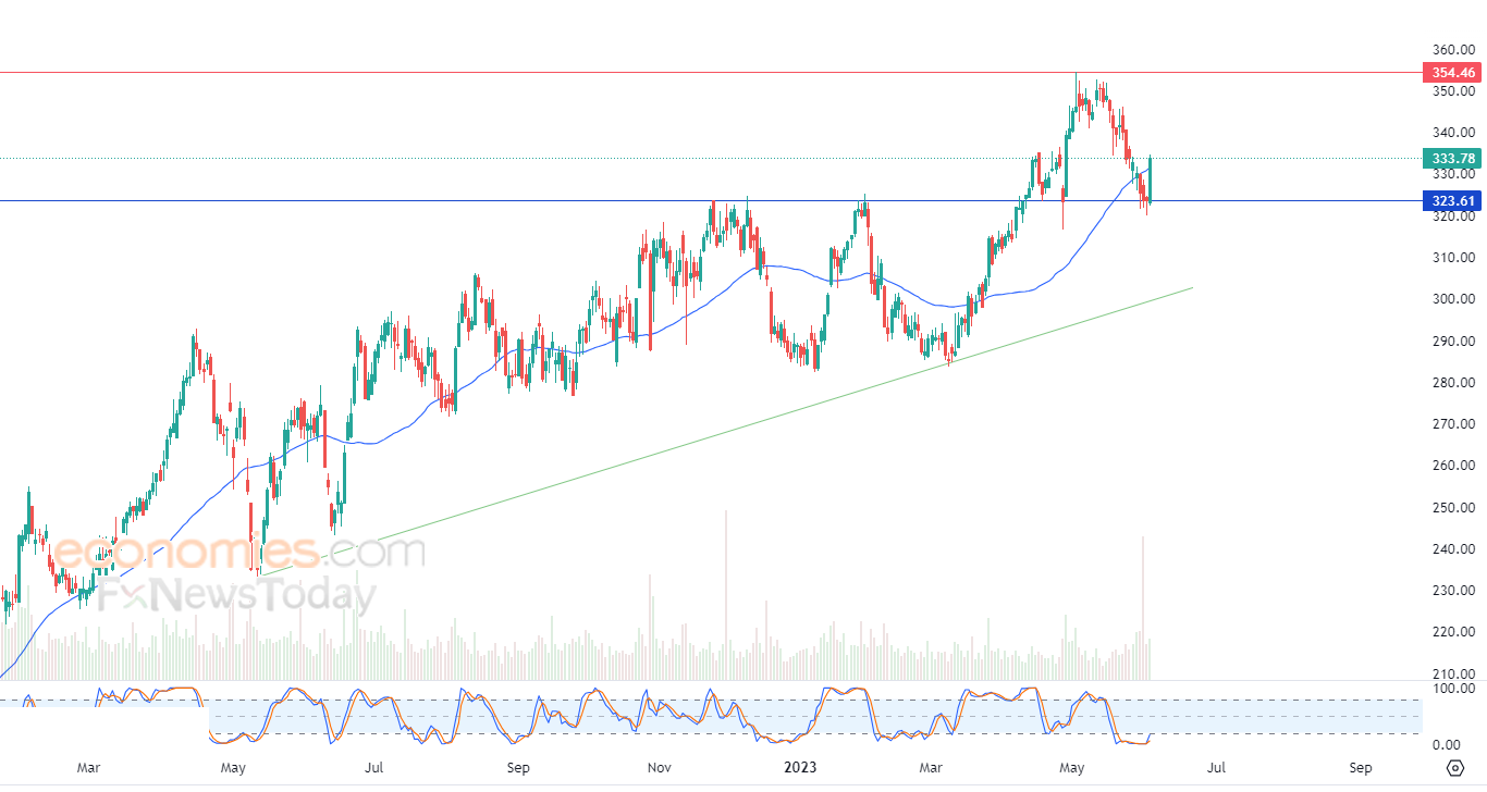 Therefore we expect more gains for the stock, targeting the resistance of 354.46, provided the support of 323.61 holds on.