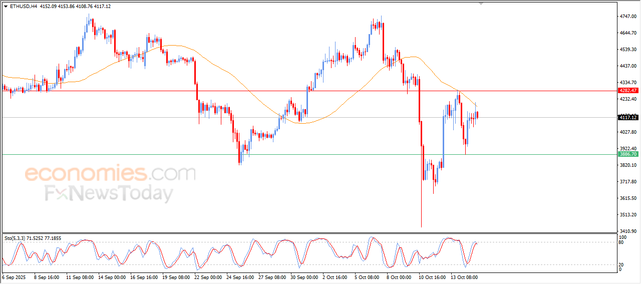 The price of (ETHUSD) declined in its last intraday trading, affected by reaching the resistance of its EMA50, which prevented its recovery in the last sessions, amid the dominance of the bearish trend on the short-term basis, with the emergence of negative crossovers on the relative strength indicators, after reaching overbought levels, intensifying the negative pressure around the price.